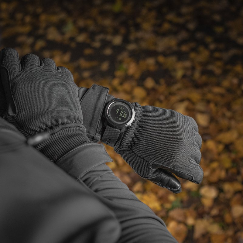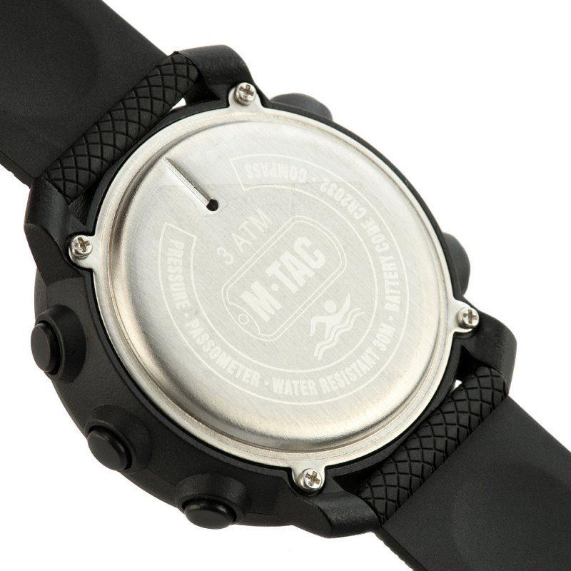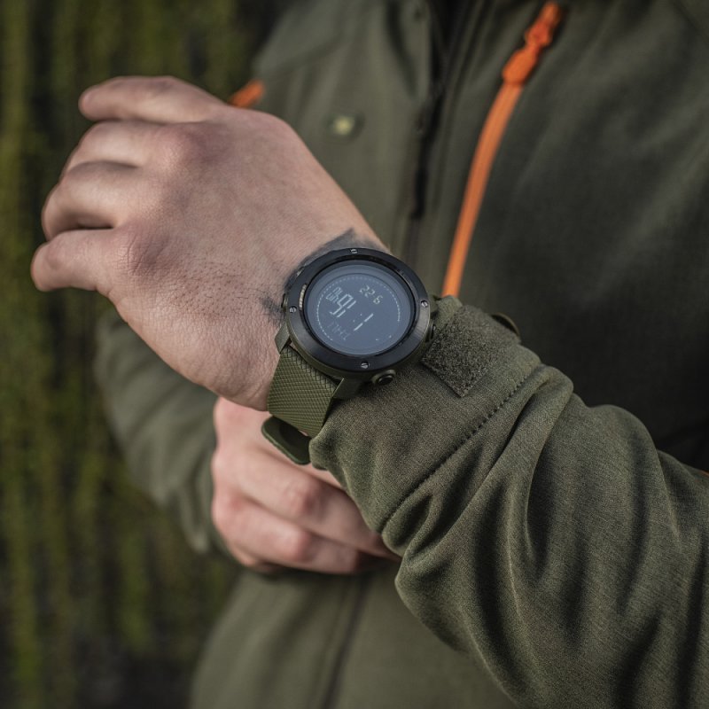 Dieses Modell ist ein unverzichtbarer Assistent für Menschen, die ein aktives Leben führen, gerne in den Bergen wandern und ideal für das Militär sind . Die einzigartigen Funktionen der Uhr M-Tac werden nicht nur für Menschen, die Extremsportarten wie Fallschirmspringen betreiben, nützlich sein, sondern auch im Alltag unersetzlich sein. Sie kann Ihnen den Luftdruck und die Lufttemperatur anzeigen. Durch die Überwachung der Uhr können Sie im Voraus eine Verschlechterung der Gesundheit vorhersagen und Ihre Arbeitsbelastung gut verteilen. Die multifunktionale taktische Uhr M-Tac ist mit einem robusten, langlebigen Gehäuse aus Polycarbonat + robustem Edelstahl-Lünette ausgestattet . Das Glas besteht aus organischem Polycarbonat, das Kratzern und Beschädigungen ohne Probleme widersteht. Wasserdichtigkeit 3 ATM .