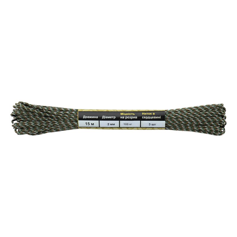 M-Tac Paracord 550 Typ III ist ein Nylonschnur, die aus einem äußeren Geflecht (einer großen Anzahl von ineinander verwobenen Fasern) und einem Kern (mehreren ineinander verwobenen Nylonschnüren) besteht, was ihre Stärke und Leichtigkeit gewährleistet.